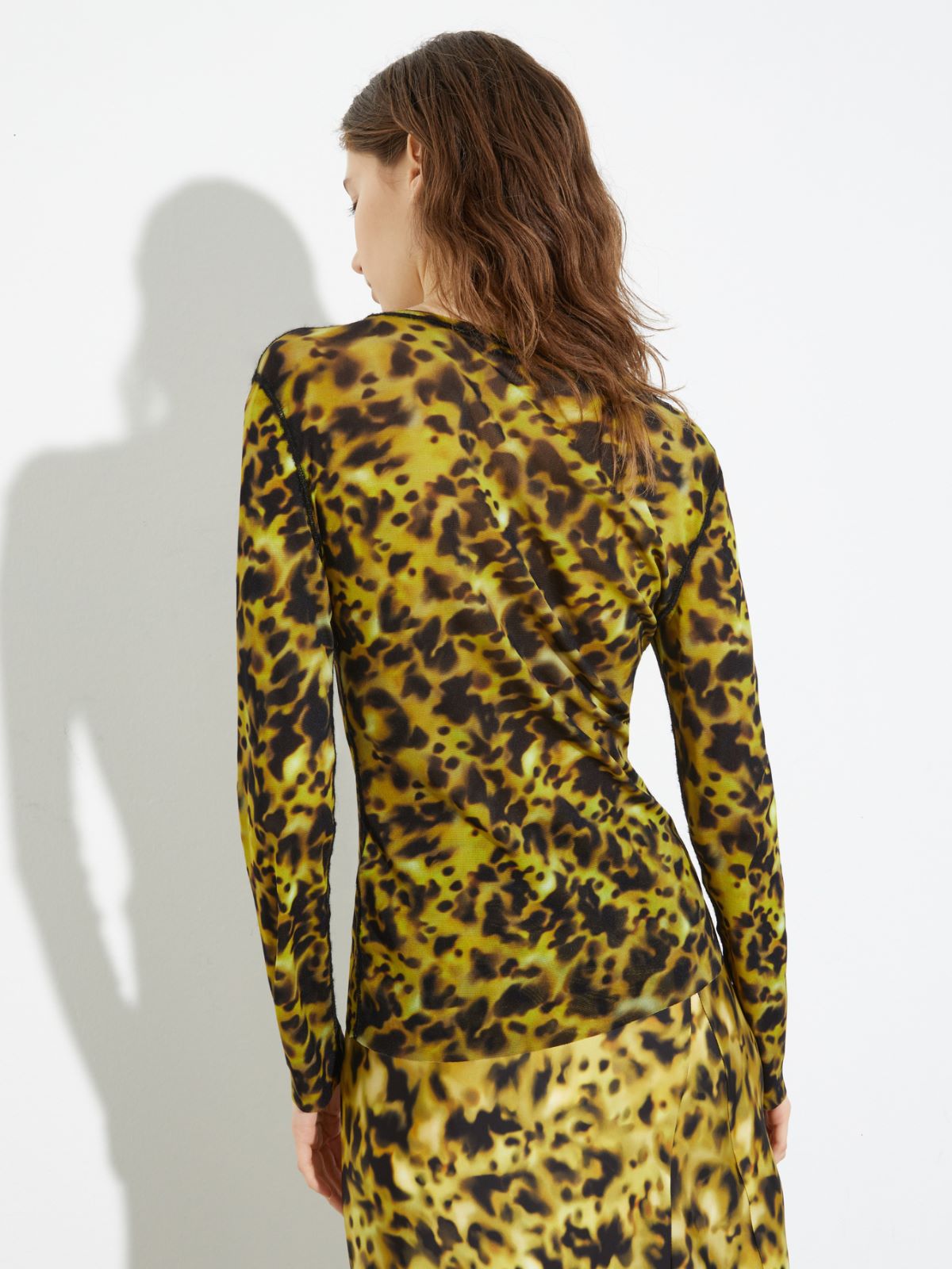 Animal-print tulle-jersey T-shirt