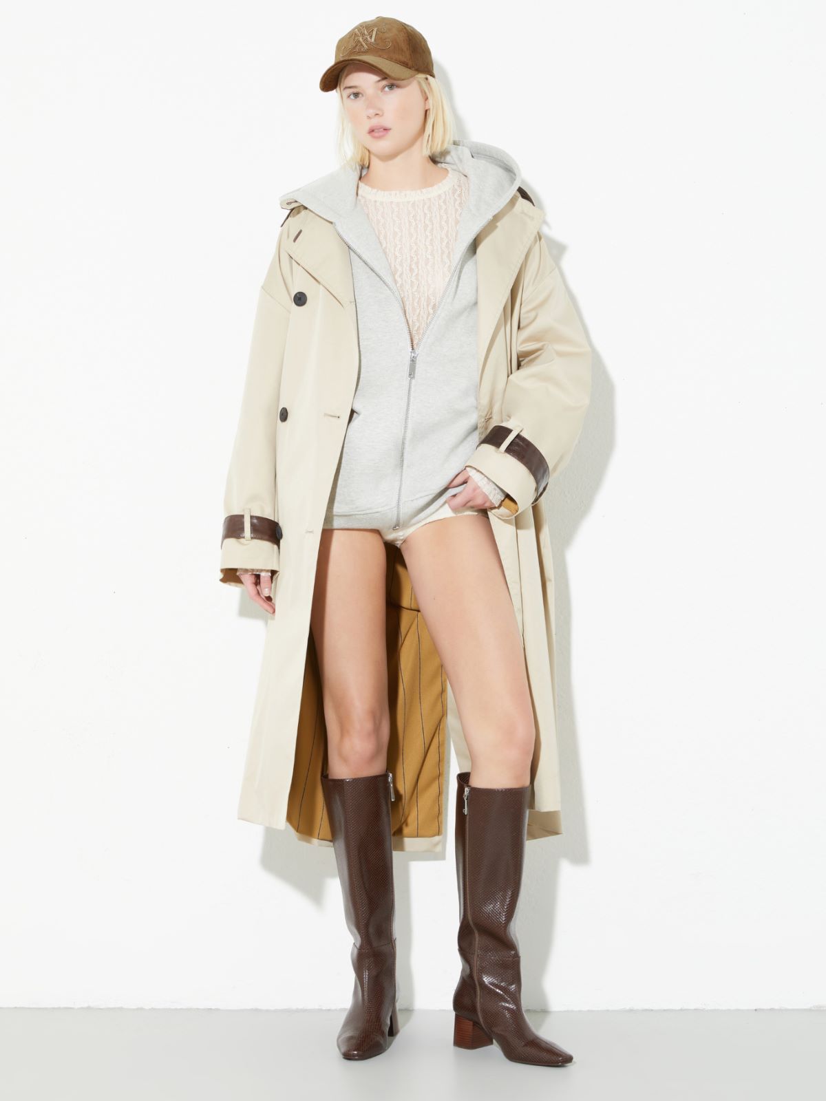 Fabric 98% cotton, 2% elastane; lining 100% cotton; swearband 100% cotton.