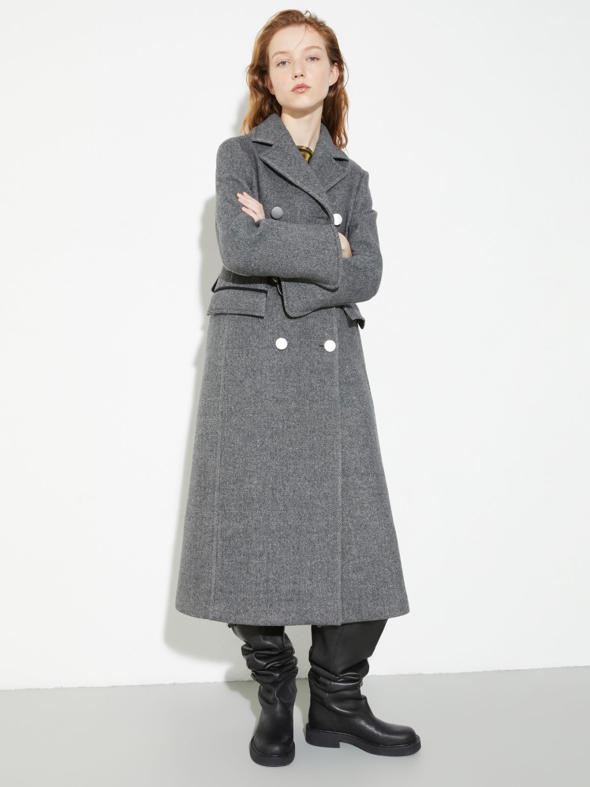 A weighty wool-blend fabric adds soft structure to the simple, streamlined silhouette of this coat, reimagining classic menswear tailoring.