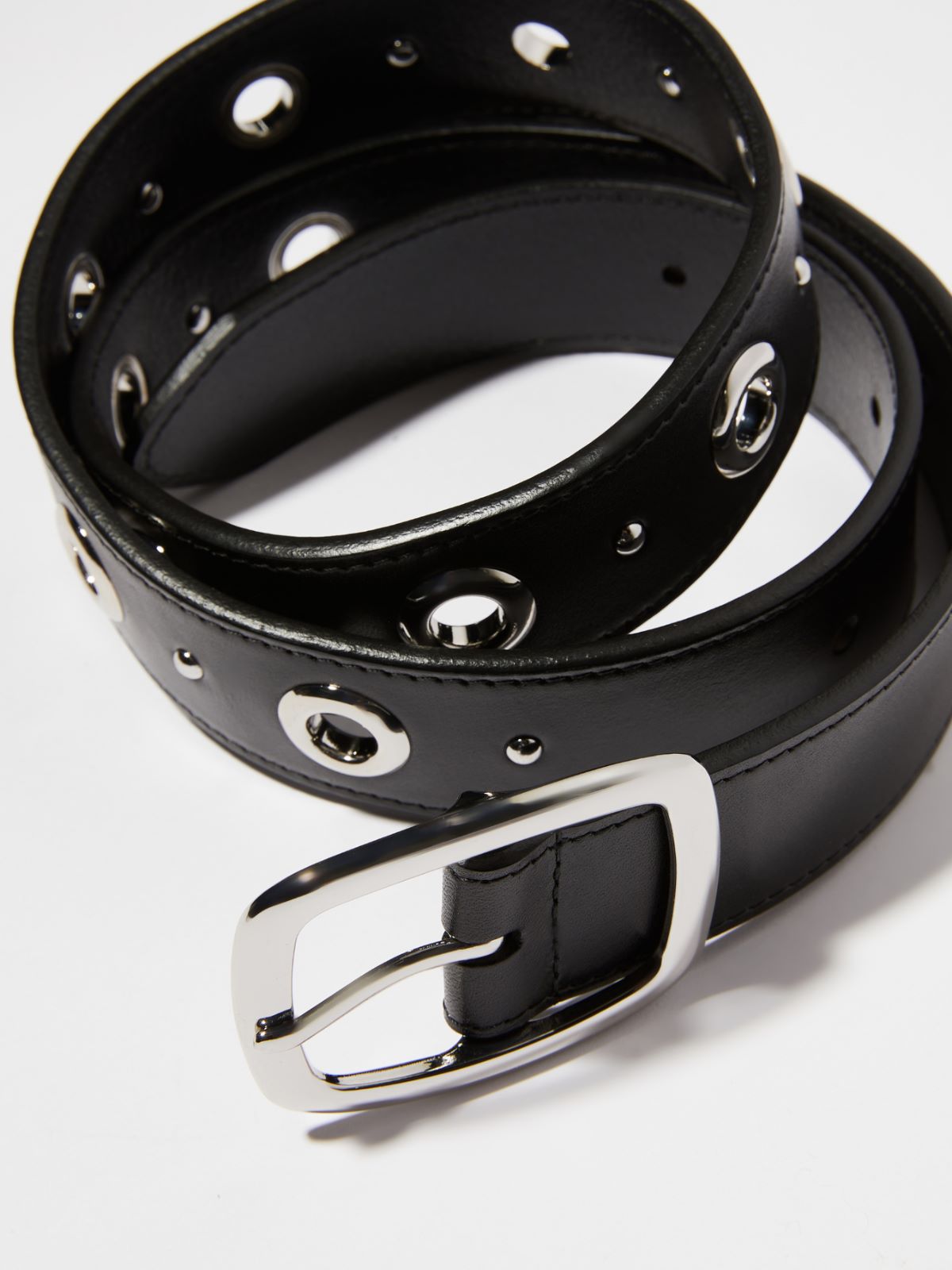 This leather belt is embellished with metal studs and eyelets as a clear reference to the iconic MAX&Co. dot. Use it to add a gritty finishing touch to any outfit.
