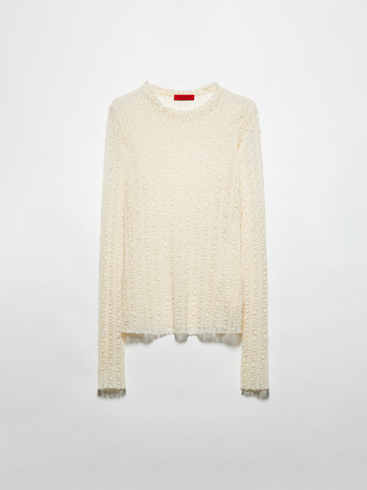 Inspired by delicate lingerie, this jersey top is spun from a lightweight, semi-sheer lace jersey.