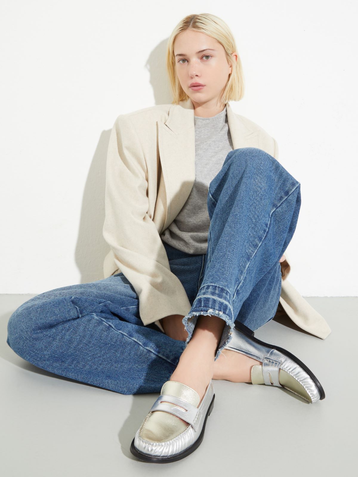 Reimagined with signature MAX&Co. style, the staple loafer silhouette takes on a new guise with either a textured finish, or shimmering, laminated detailing.