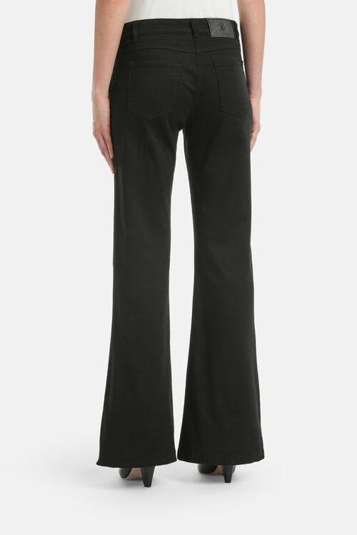 Five pocket jeans made of denim. Gilded button embellished with engraved „LS“, flared-leg design for a flattering silhouette. Matching tab trimmed with a metal appliqué. Regular fit.