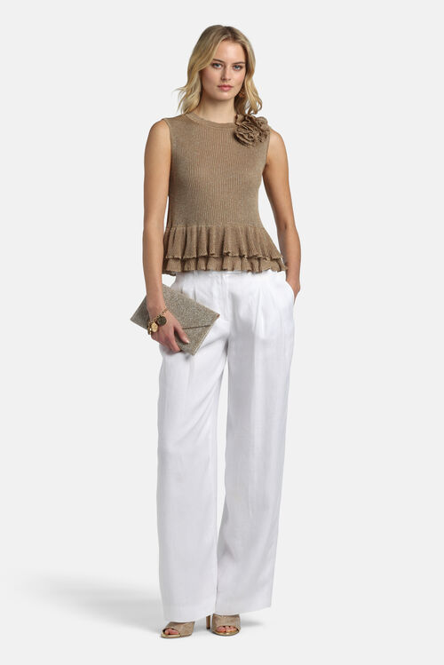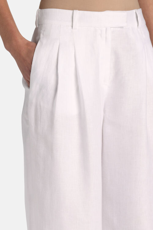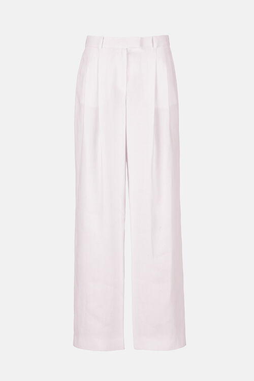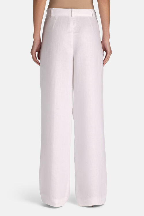 Pure linen pants with open pleats, belt loops, a classic zip-and-hook fastening, and side pockets, finished with a wide leg. Regular fit.