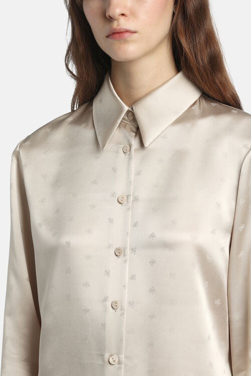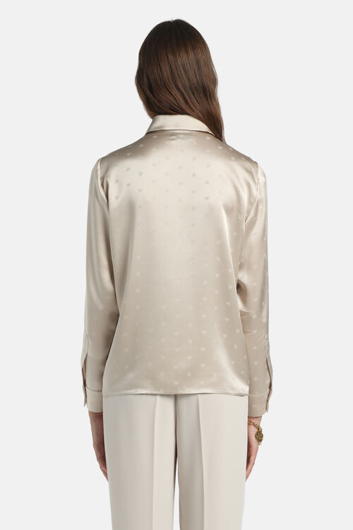 Jacquard silk satin shirt with a tonal Monogram pattern, a pointed collar, tonal buttons, and long sleeves with wide cuffs. Regular fit.