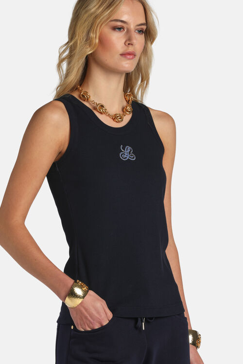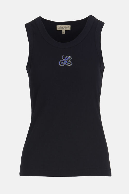 Ribbed cotton tank top with contrast „LS“ signature embroidery and crew neckline. Slim fit.