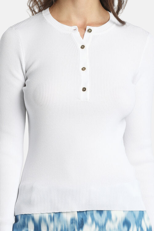 Henley sweater in viscose-blend knit with flat ribs, a round neckline, and gold-tone buttons. Slim fit.