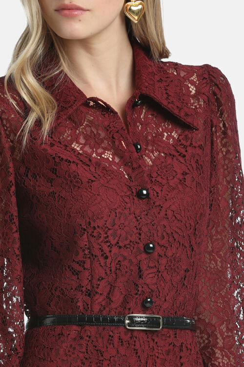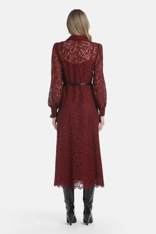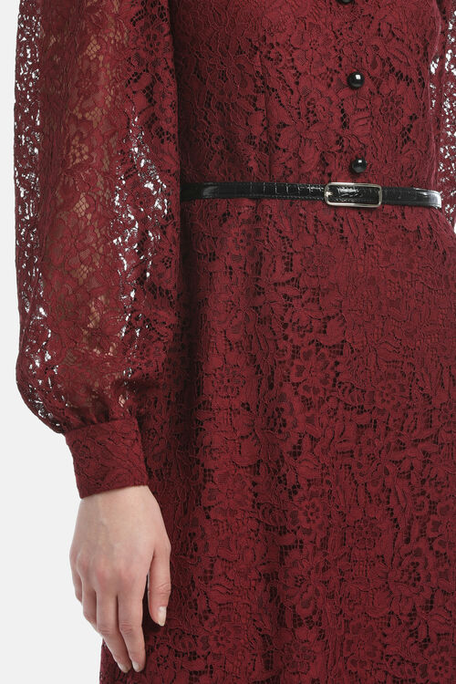 Long day dress made of floral lace. Shirt-style silhouette with tone-on-tone buttons, matching crocodile-embossed patent belt. Partially lined. Mid-calf length. Regular fit.