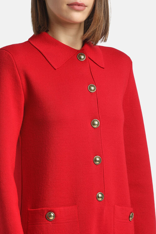 Minidress in plain-knit pure virgin wool. Features a shirt collar, straight fit, heraldic “LS” buttons in gold-tone metal, patch pockets. Above-the-knee length. Regular fit.