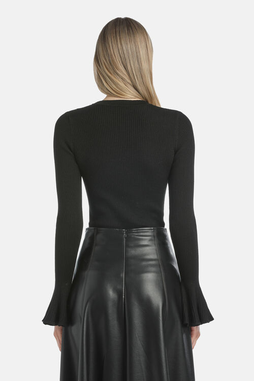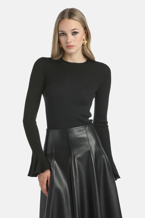 Fitted ribbed-knit pullover in pure virgin wool, featuring a round neckline and flared cuffs. Regular fit. Fashion Show.