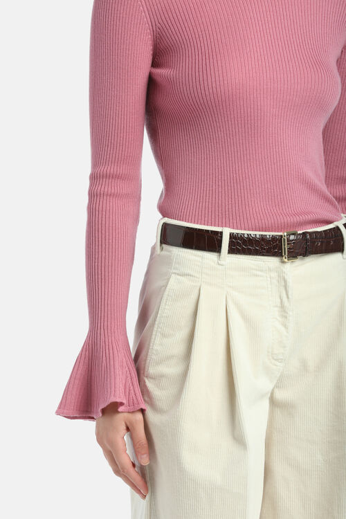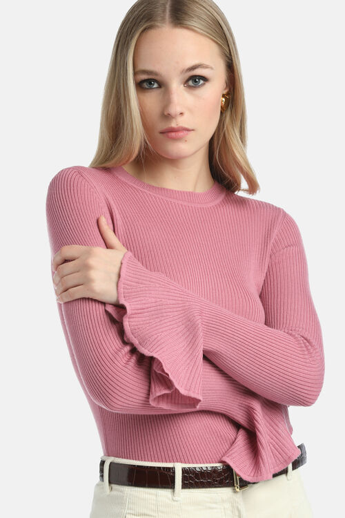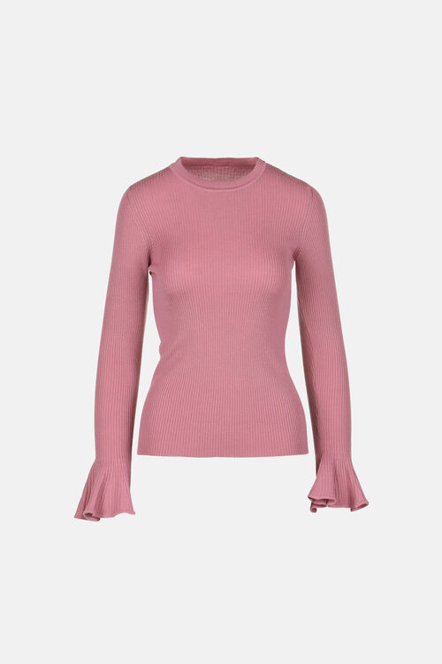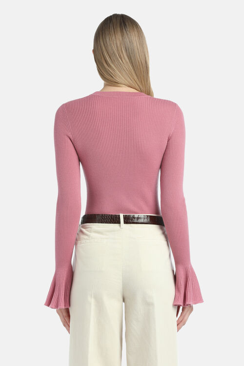 Fitted ribbed-knit pullover in pure virgin wool, featuring a round neckline and flared cuffs. Regular fit. Fashion Show.