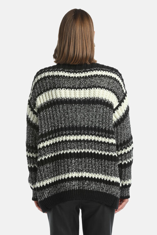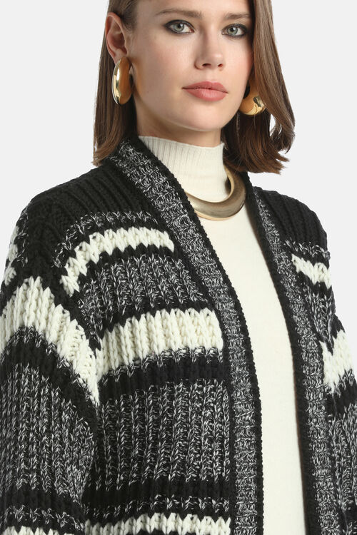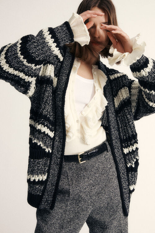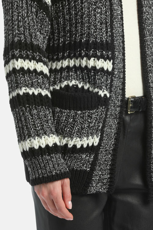Open cardigan in chunky-ribbed wool-blend knit. Irregular stripe pattern in varying thickness and color. Patch pockets. No buttons. Regular fit.