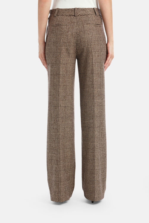 Wool-blend houndstoot trousers. Zip and button closure, front darts forming pleats, inset side pockets, back welt pockets. Wide straight leg. Regular fit.