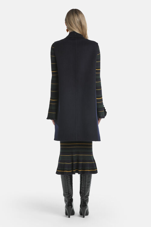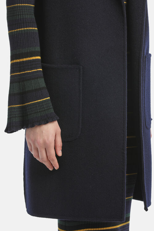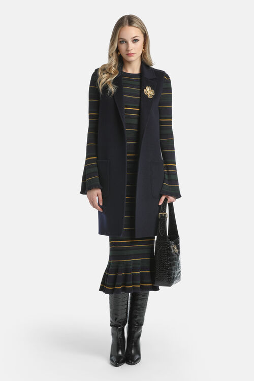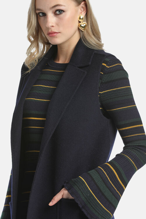 Sleeveless blazer crafted from wool-blend cloth. Features classic lapels, patch pockets, and accentuated seams. No buttons. Regular fit.