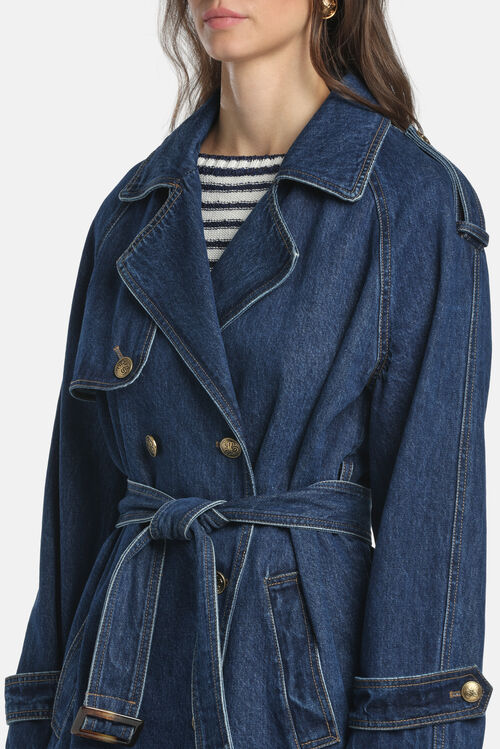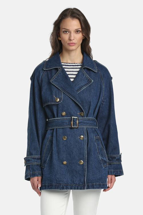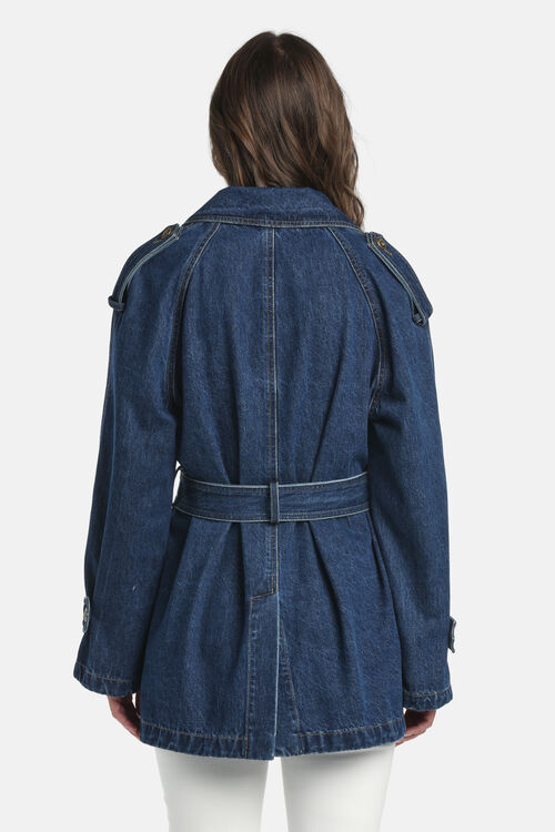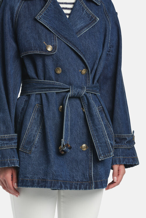 Short denim trench with belt