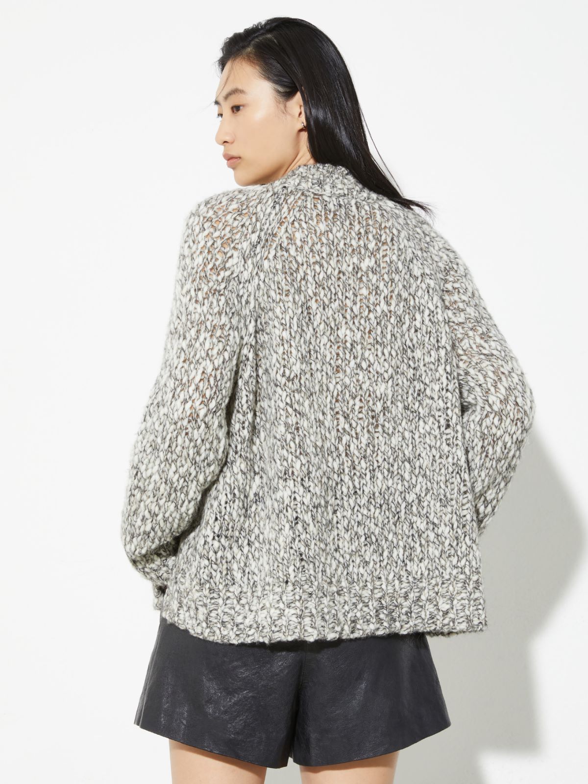 Knitwear to the MAX: this oversized cardigan boasts a sophisticated mix of mouliné and slubbed textures for an ultra-soft, warm yet lightweight finish.